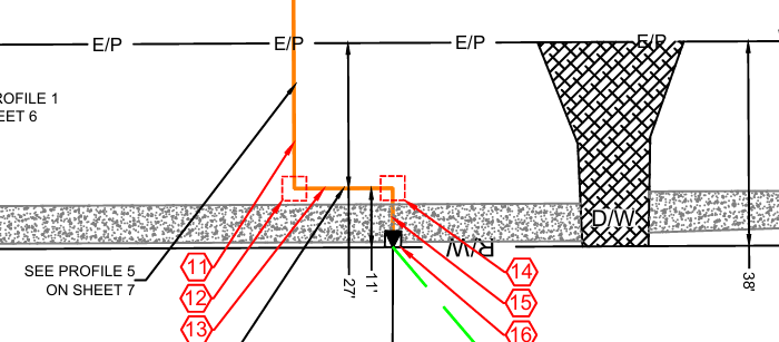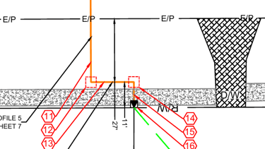 Include layers showing right-of-way, roads, utilities, trench paths.