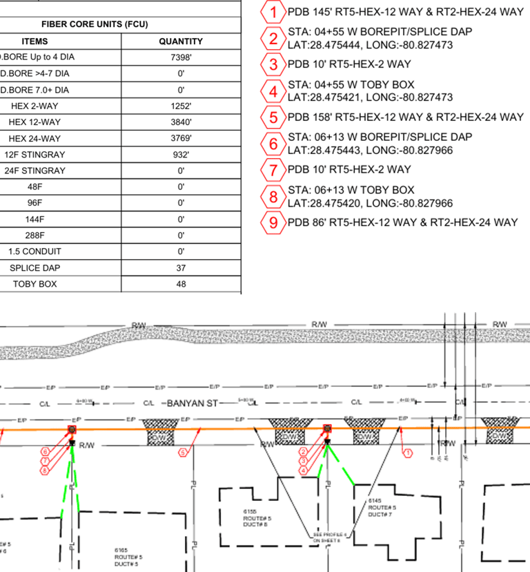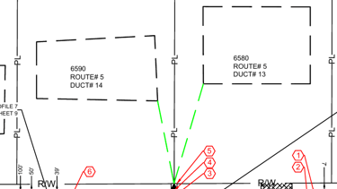 Automation: Bill of Materials, duct numbers, route IDs, and structure codes are created using GIS logic and rules — no spreadsheets or manual labeling.